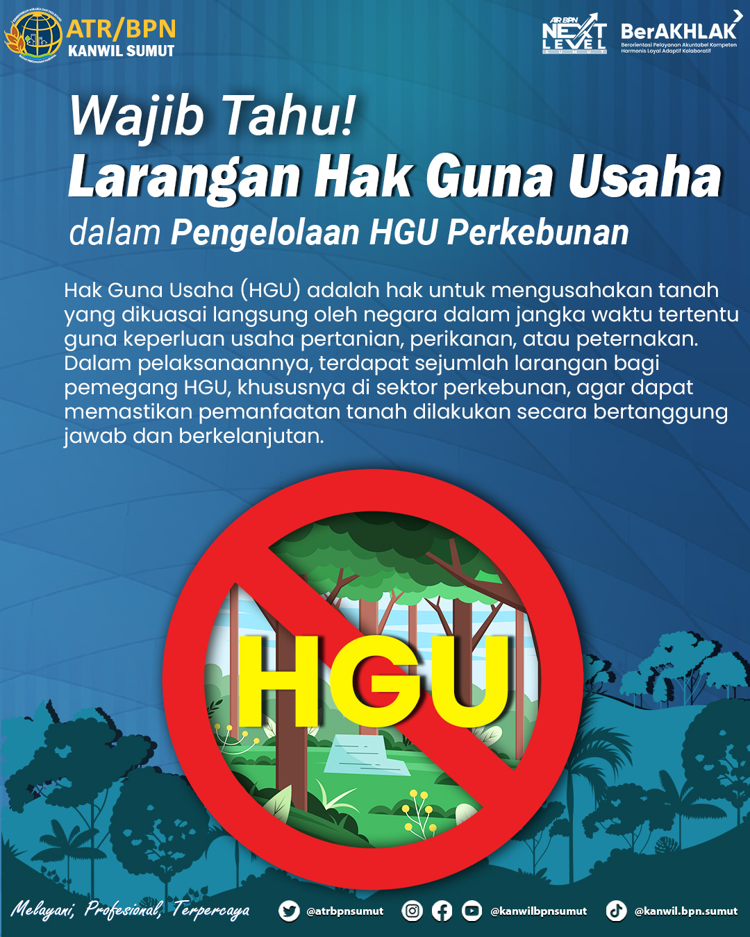 Jika merujuk pada Pasal 28 PP No.18/2021, pemegang HGU memiliki beberapa dilarang, yaitu :